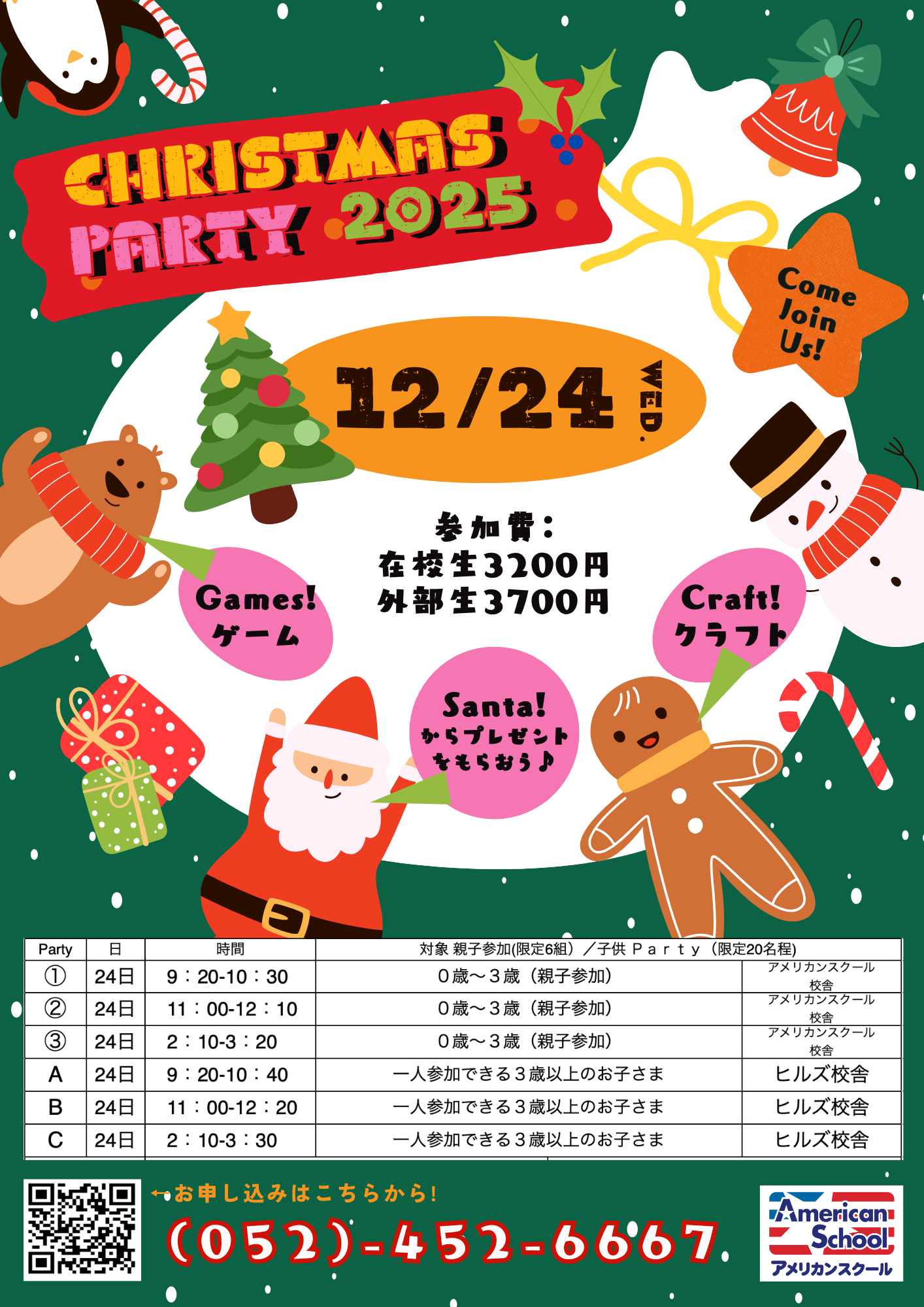 (イベント申込についてのご質問等はアメリカンスクール校へ)